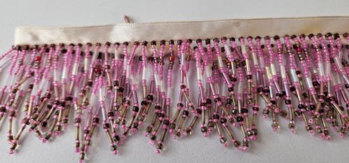 Couture Pink & Bronze Beaded Fringe Trim – 18" Handcrafted...