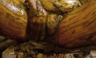 Manure dyke pair grind pussies slathered in blended pig cow...