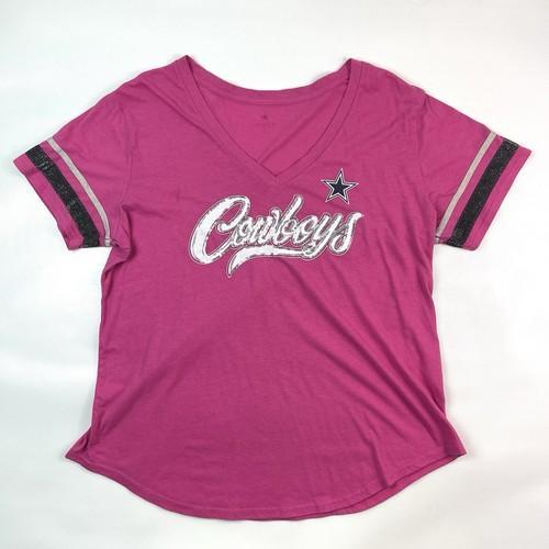 Dallas Cowboys Pink Sequin Logo V-Neck Graphic Top T-Shirt...