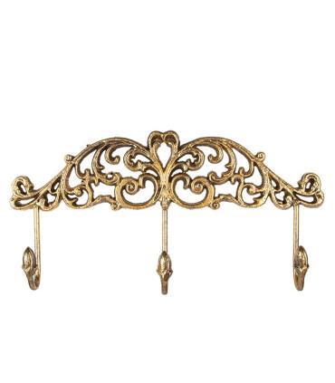 Portemanteau mural classique métal doré 3 crochets 38x5x19cm