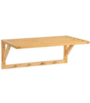 Portemanteau mural bambou 4 crochets et étagère 50x30x20cm