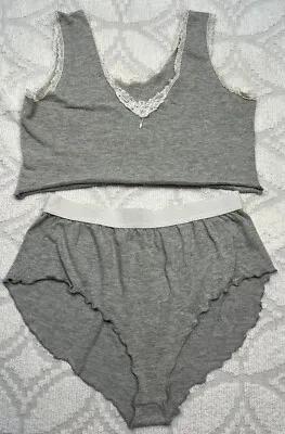 Vtg 80s 2 Pc Sz L Gray Crop Cami Pj Top & French Hi Cut Short...