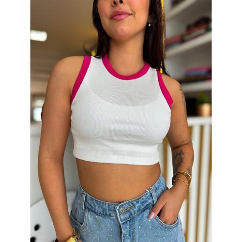 Cropped Canelado Branco com Rosa - Inovar Forever