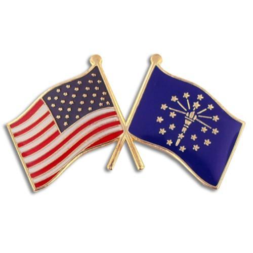 PinMart's Indiana and USA Crossed Friendship Flag Enamel Lapel...