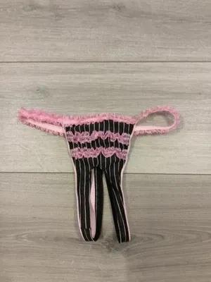 BNWOT Electric Lingerie Black & Pink StrIpe Split Crotch Thong...