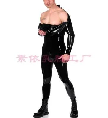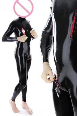 482 Men Latex Catsuit Crotch Zip Hidden Two Condm 0.4mm...
