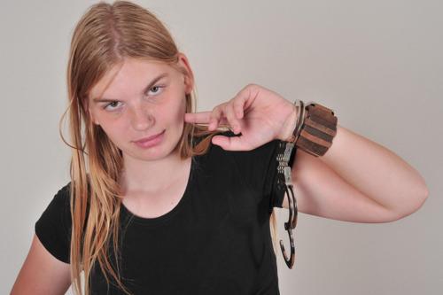 Ankle and Wrist Cuff Bondage Predicament for Blonde...