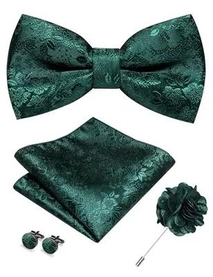 Floral Pre-tied Bow Tie and Pocket Square Cufflinks Lapel Pin...