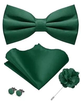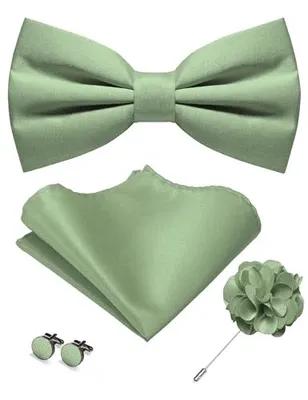 Solid Color Pre-tied Bow Tie and Pocket Square Cufflinks Lapel...