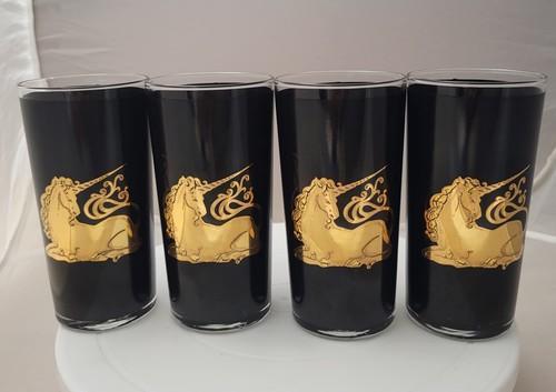 VERY RARE 4pcs CULVER TUMBLER / DRINKING GLASSES BLACK & 22K...