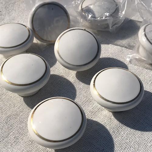 Vtg 8 White Gold Ceramic Porcelain MCM Drawer Cupboard Knobs...