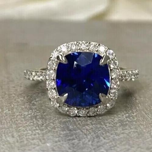 2.40Ct Cushion Cut Natural Sapphire & Diamond Wedding Ring 14K...