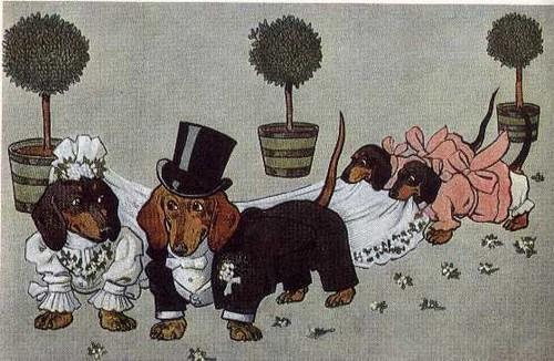Dachshund Wedding L - CUSTOM MATTED - Dog Art Print - German...