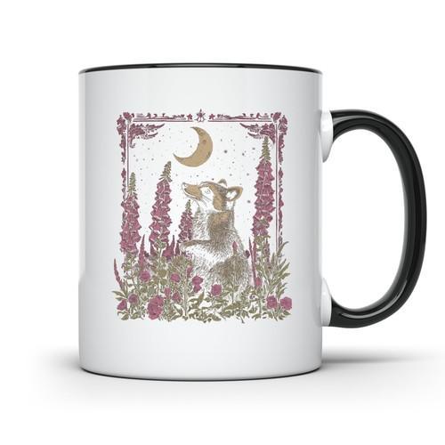 CUTE RACCOON AND MOON MUG BLACK HANDLE AND RIM 11 OUNCE COFFEE...