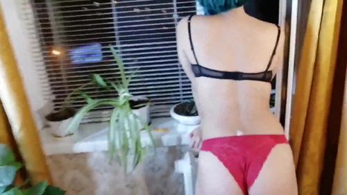 Sesso vicino alla finestra con la fidanzata dai capelli blu