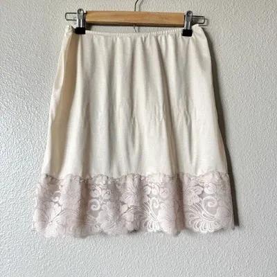 Vintage Kayser Slip Skirt Size Medium Beige Lace Trim Dainty...