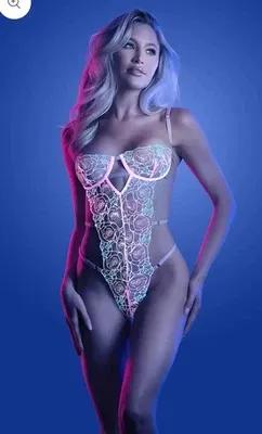 Fantasy Lingerie Glow in the dark rose embroidery Lingerie Lace...