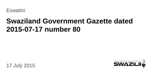 Swaziland Government Gazette dated 2015-07-17 number 80 –...