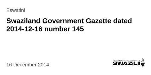 Swaziland Government Gazette dated 2014-12-16 number 145 –...