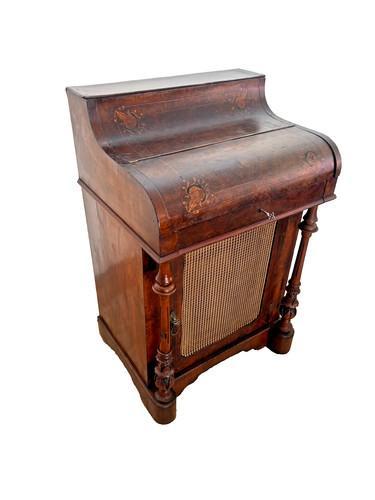 Antique burr walnut inlaid piano top davenport cylinder lift up...