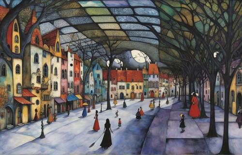 Whimsical Village Scene Under Stained-Glass Sky | Deep Dream...