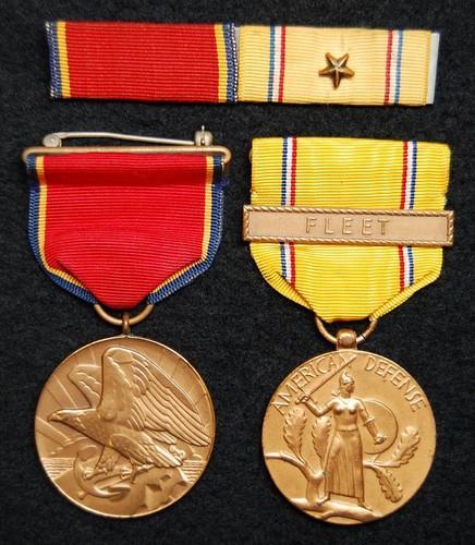 WW II US Navy & Marine Corps American Defense Medal Pin Back...