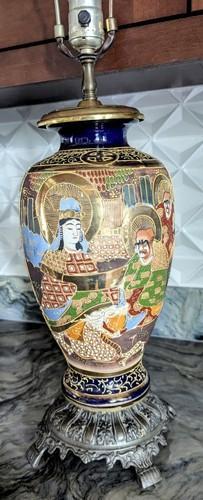 Vtg.Japan Satsuma,Moriage Lamp w/Dragon & Deity Design w/Ornate...