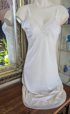 Vintage Full Slip in Silky Soft Ivory Nylon Delicate Lace...