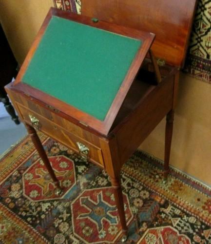 ANTIQUE AMERICAN FEDERAL WORK TABLE W/FINE DELICATE LEGS & LIFT...
