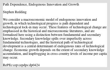 Path Dependence, Endogenous Innovation and Growth