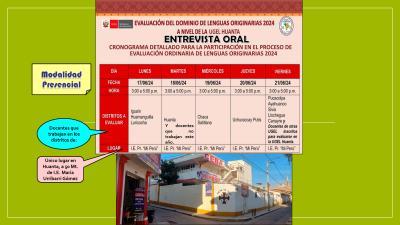 DETALLES DE LUGAR DE EVALUACIÓN DE LENGUA ORIGINARIA 2024.