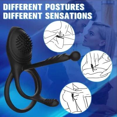 10 Vibrating Silicone Dual Penis Cock Ring Dick Massager Sex...