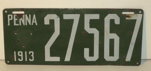 1913 Pennsylvania Porcelain License Plate Five Digit Green White