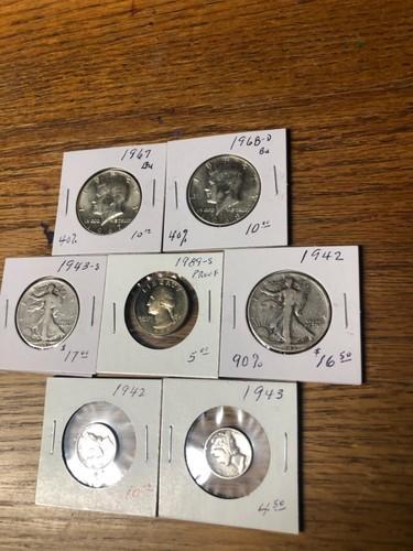 U S Silver Lot Walking Liberty’s Mercury Dimes, Kennedy’s...
