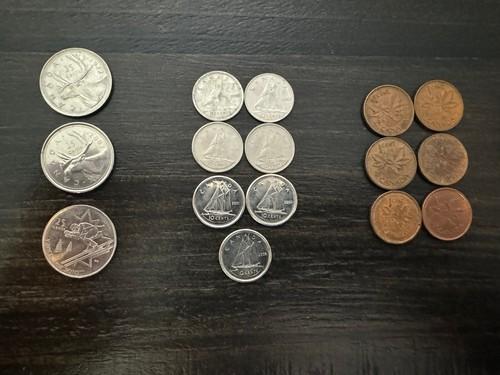 Lot Of 16 Canadian Quarters, Dimes & Pennies 1950’s-2000’s