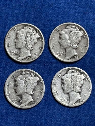 1943 & 1943 US Liberty Mercury Dimes (4) 10C - 90% Silver Coins