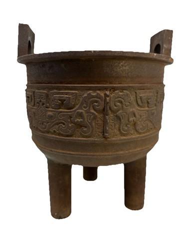 Large Chinese Cast Iron Archaistic Tripod Censer Ding Antique...