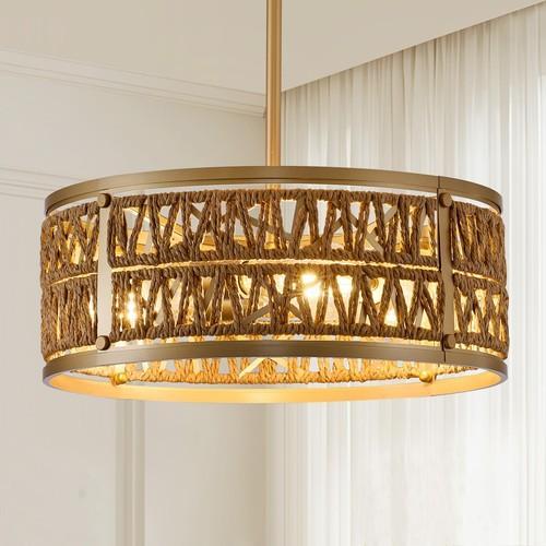 3 Light Rattan Chandelier, Farmhouse Chandeliers for Dining...