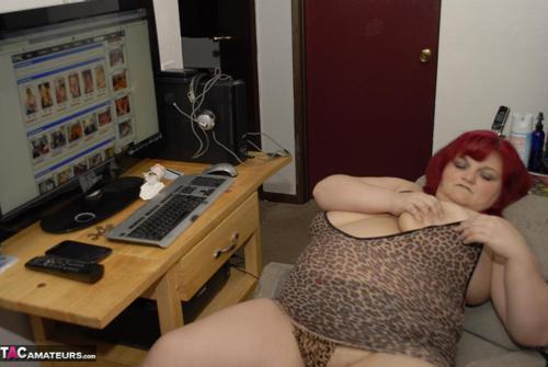 BBW housewife wanking while looking at dirty pics on her...