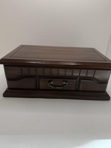 Vintage 1988 Wooden Jewelry Box With Divided Compartments, Ring...