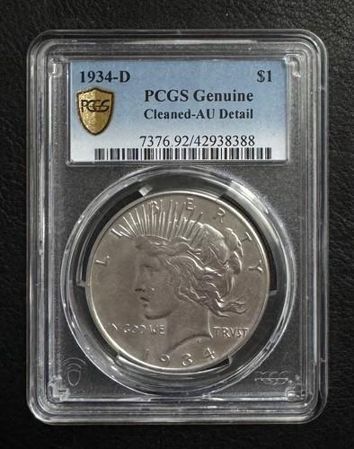 1934 d peace dollar PCGS Genuine Cleaned—-AU Detail