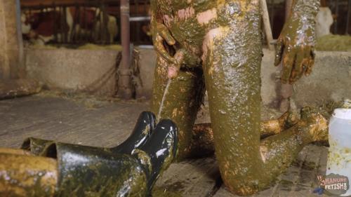 Mistress Marlena Dominating her slave in cowshit