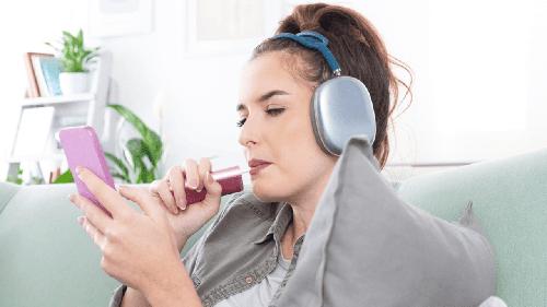 Local Doom Scroll Addicted Woman Drinking Iced Coffee While...