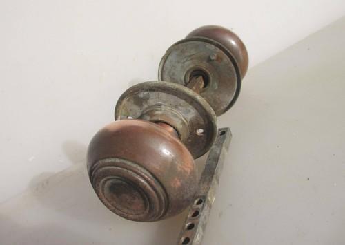Antique Iron Door Knobs Handles Plates Old Oval Vintage Copper...