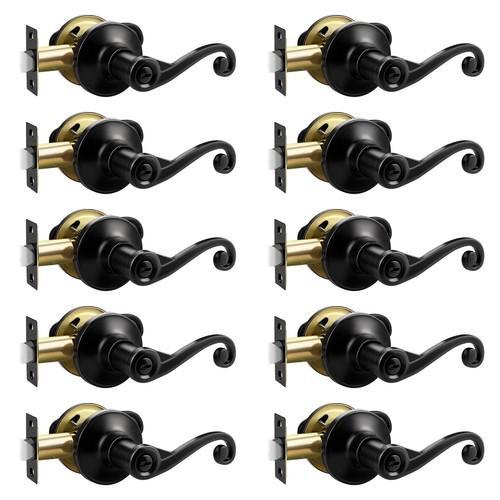 10 Pack Black Matte Interior Door Handle with Lock, Modern...