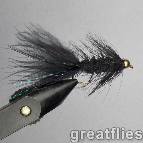 1 dozen (12) - Woolly Bugger - BLACK - Bead Head