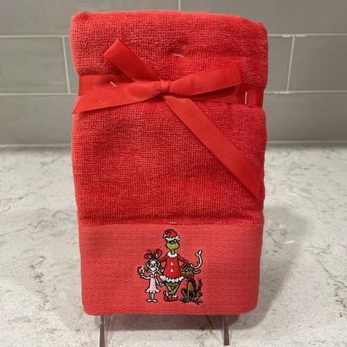 Set Of 2 THE GRINCH Dr. Seuss Christmas Embroidered Hand Two...
