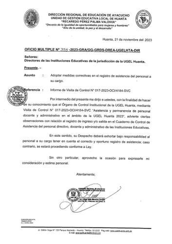 OFICIO MULTIPLE Nº 335-2023-GRA/GG-GRDS-DREA-UGELHTA-DIR