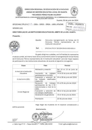 OFICIO MÚLTIPLE Nº 151 – 2024 – GRDS-DREA-UGELH.TA/DIR