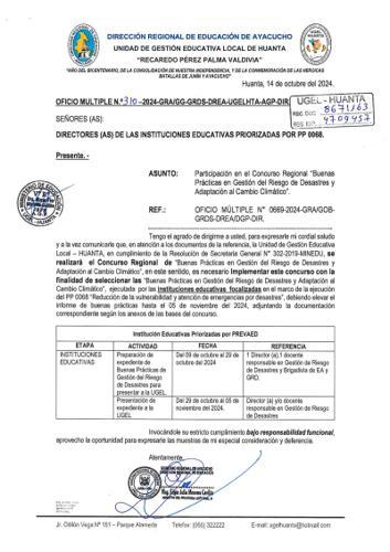 OFICIO MÚLTIPLE Nº 214 – 2024 – GRDS-DREA-UGEL.HTA/AGP-DIR